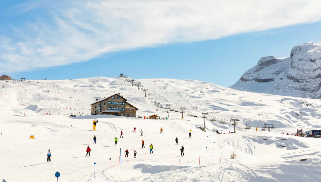 아이스크림에 잘 어울리는 하얀 스키장 배경을 준비하고,